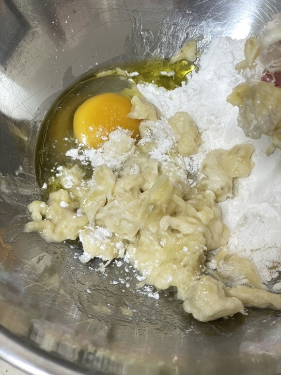 계란, 올리브유, 쌀가루, 바나나, 펫밀크, 캐롭가루